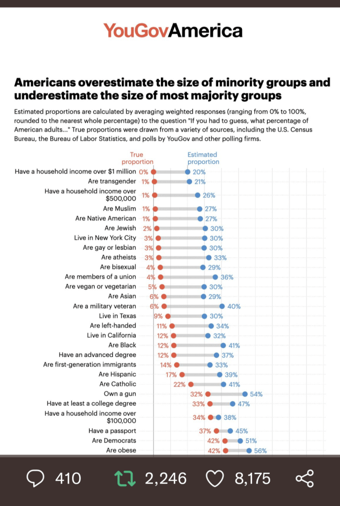 2. The amount of power granted “leaders” who gin up fear around Muslim & LGBTQ Americans, given their extraordinarily small numbers, is frightening. Fear and Loathing of the “other” has become a monstrous feature of the American operating system.